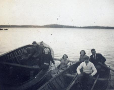 Inga-Lill Lönnberg i den lilla båten och systern Hjördis till höger i den större båten invid Kalvholmen.