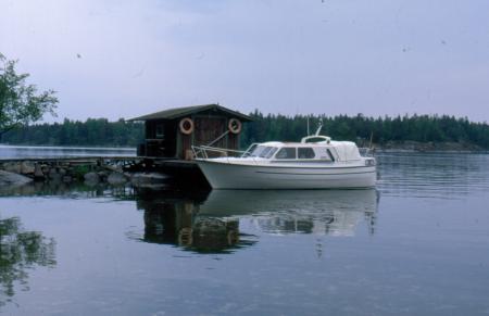 M/s Sofia är förtöjd år 1990 vid fiskare John Sjöberg och hustrun Gerdas brygga.