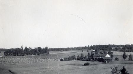 Utsikt från Jolkby mot kyrkan och prästgården som är i Gesterby.