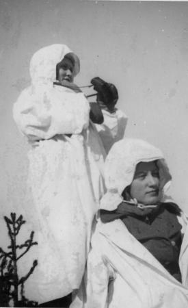 Två unga luftbevakningslottor under vinterkriget på sin post.