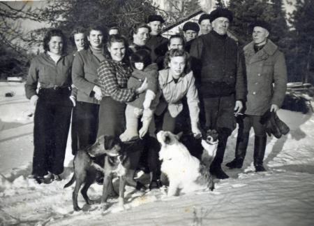 Husbonden på Råbacka Albert Lönnberg och hustrun Selma med barnens familjer.
