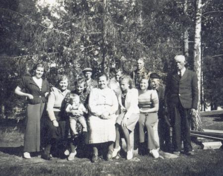 Småbrukaren på Kalvholmen Albert Lönnberg och hustrun Selma med sina barn och barnens familjer.