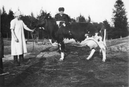 Ko, deja och Valfrid Engberg. Bästa kon Jutta som under sex år mjölkat över 5 000 kg per år.