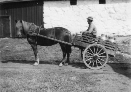 Hästen Lärkan och Johan Holmberg som körde mjölken från Storkvis till Jorvas station.