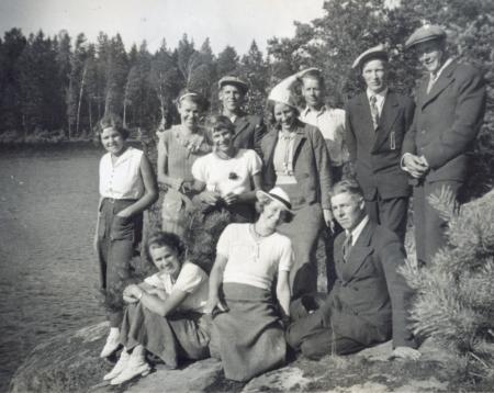 Följande personer är med på utfärden till Pentala. På fotot vid Pentala träsk är från vänster 1) Hjördis Lönnberg 2) sittande Gunvor Norrman 3) Anita Ekström 4) Inga-Lill Lönnberg 5) Tor Dannbäck 6) sittande Gerda Dannbäck 7) Gurli Dannbäck 8) Åke Sandberg 9) sittande Åke Lönnberg 10) Holger Norrman 11) Tor Lönnberg