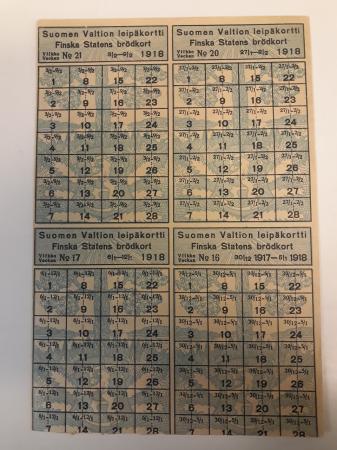 Finska statens brödkort från 1918. | Suomen valtion leipäkortti vuodelta 1918.