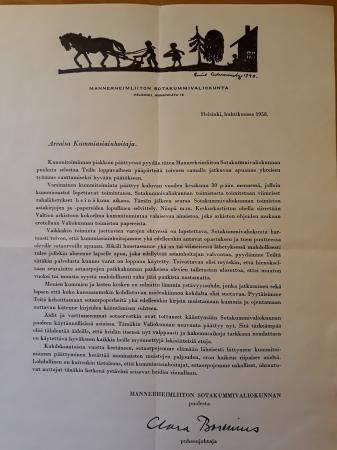 1076 Lahjoittaja: kirkkoherran vaimo Margit Jansson. Arkistonmuodostaja: Mannerheimförbundets Krigsfadderutskott för Nyland, Kyrkslätt avdelning (suom. Uudenmaan Mannerheimliiton sotakummivaliokunta, Kirkkonummen osasto).