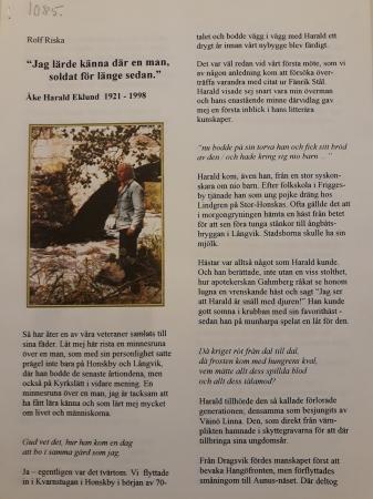 "Jag lärde känna där en man, soldat för länge sedan." Åke Harald Eklund 1921 - 1998.