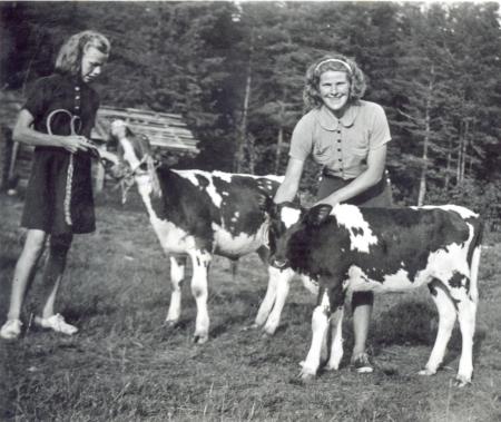 Systrarna Lönnberg sköter om kalvarna som är på bete. Britta till vänster och Leone till höger.