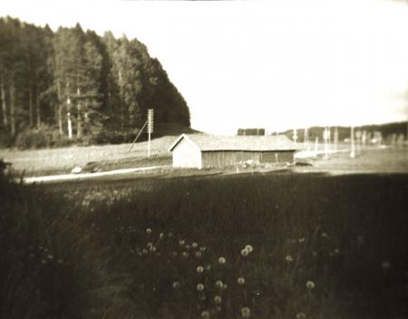 Vy från Teir mot lada och Vadängarna i Oitbacka.