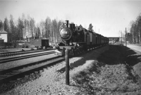 Tåget från Kyrkslätt till Helsingfors är här på Jorvas järnvägsstation.