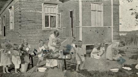 Barnträdgårdsbarnas sommarkoloni år 1915 i Hirsala.