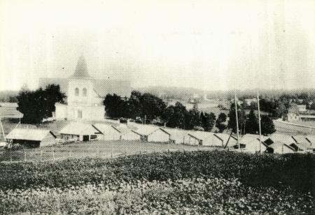 Kyrkslätts kyrka och kyrkstall i slutet av 1800-talet.